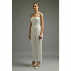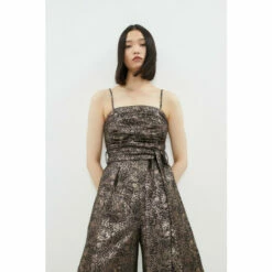 Coast Metallic Jacquard Pleat Bodice Wide Leg Jumpsuit For Female