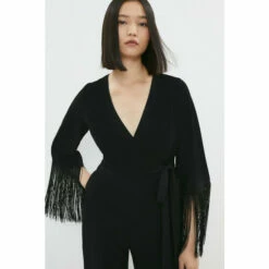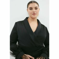 Coast Plus Size Drape Front Feather Cuff Jumpsuit For Female