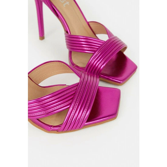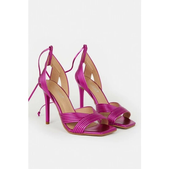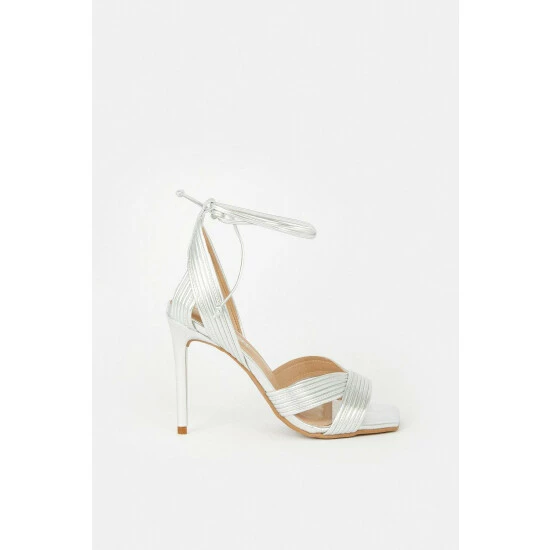 Style: Strappy HeelsDesign: PlainFabric: Metallic