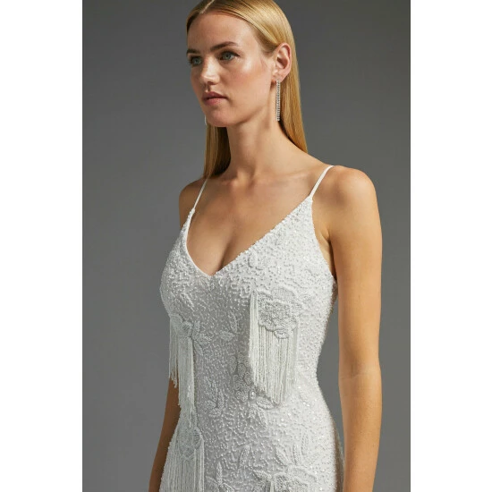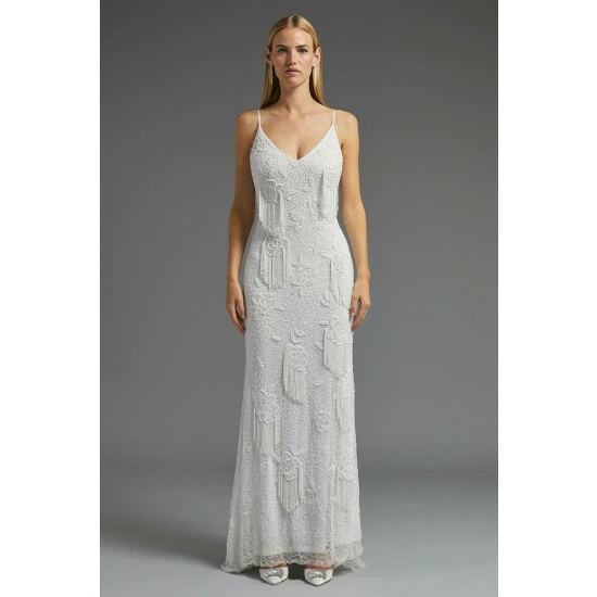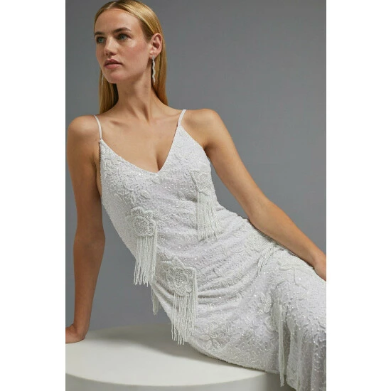 Style: Slip DressFabric: Hand StitchLength: MaxiNeckline: StrappySleeve Length: Strappy