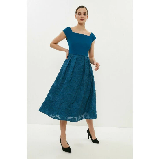 Main 1: 51% Polyester, 49% Polyamide. Main 2: 89% Polyester, 11% Elastane. Lining: 100% Polyester. Dry clean only. Length 108cm.
