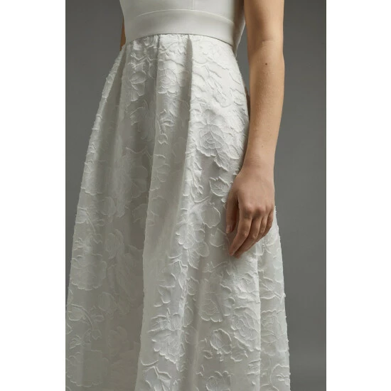 Main 1: 51% Polyester, 49% Polyamide. Main 2: 89% Polyester, 11% Elastane. Lining: 100% Polyester. Dry clean only. Length 108cm.