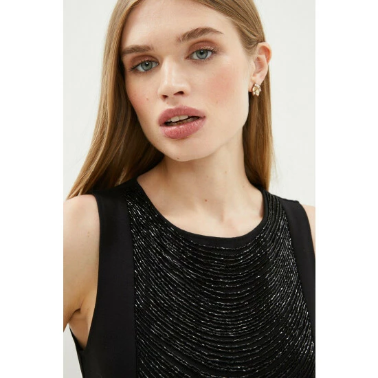 69% Viscose 28% Nylon 3% Elastane. Hand wash only. Length: 90cm