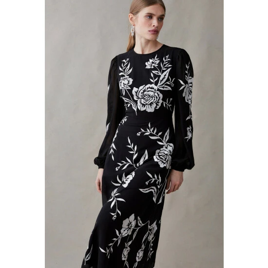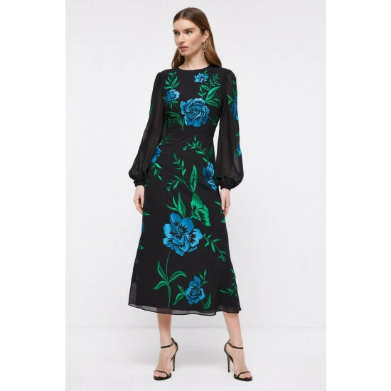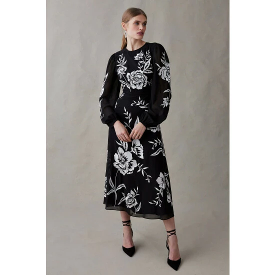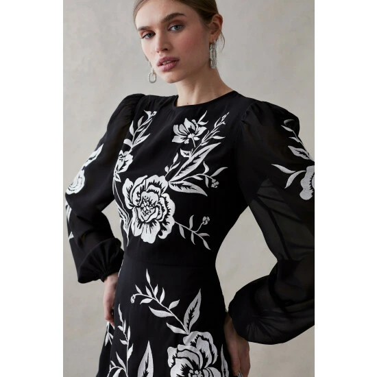 Blooming Marigold Embroidered Midi Dress