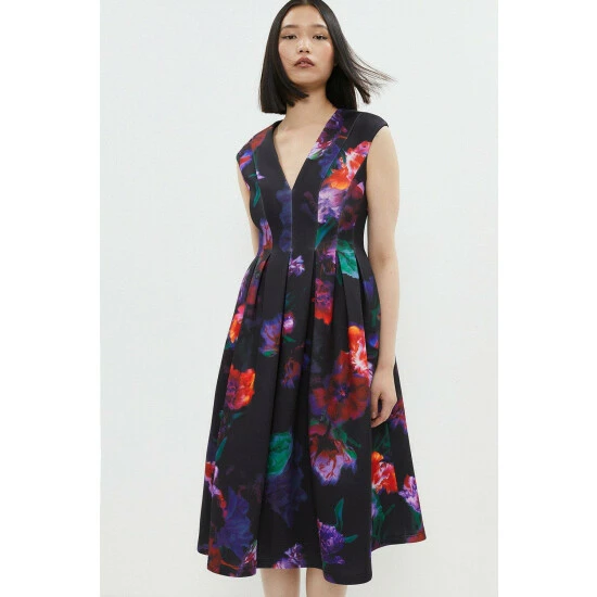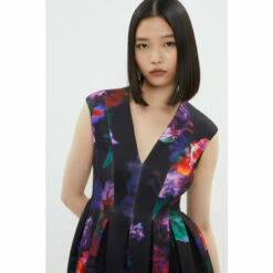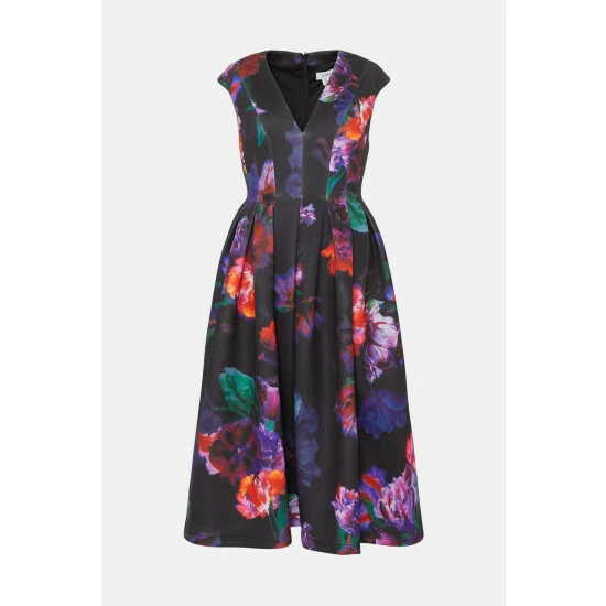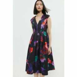 Main: 91% polyester 9% elastane Lining: 100% polyester. Machine wash at 40. Length: 117cm