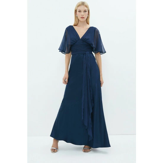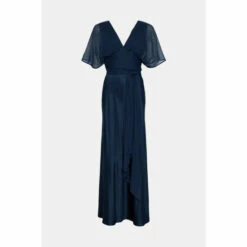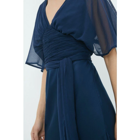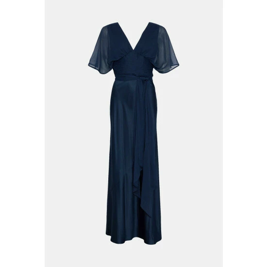 Style: Fit & Flare DressDesign: PlainFabric: ChiffonLength: MaxiNeckline: V NeckSleeve Length: Short Sleeve