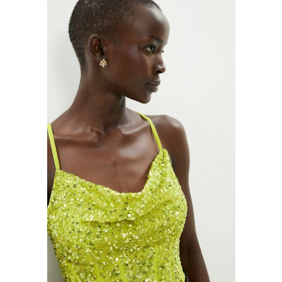 Main: 100% Polyester. Lining: 100% Polyester. Hand Wash Only. Length 43cm.