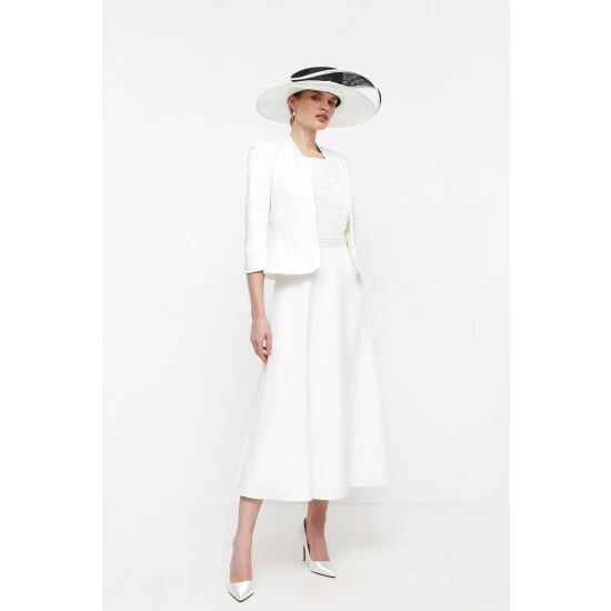 MAIN: 89% POLYESTER 11% ELASTANE LINING:97% POLYESTER 3% ELASTANE. DRY CLEAN ONLY. LENGTH: 53CM