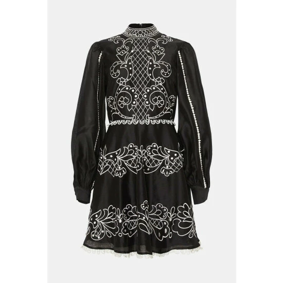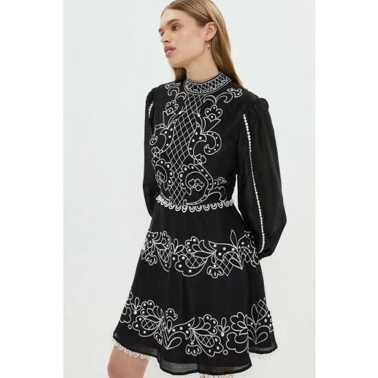 Main: 100% polyester Lining: 100% polyester Embroidery: 100% polyester. Machine wash at 30. Length: 95cm