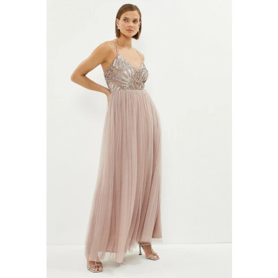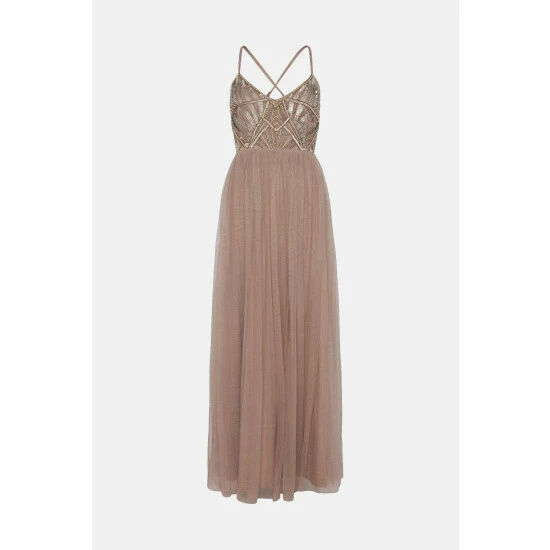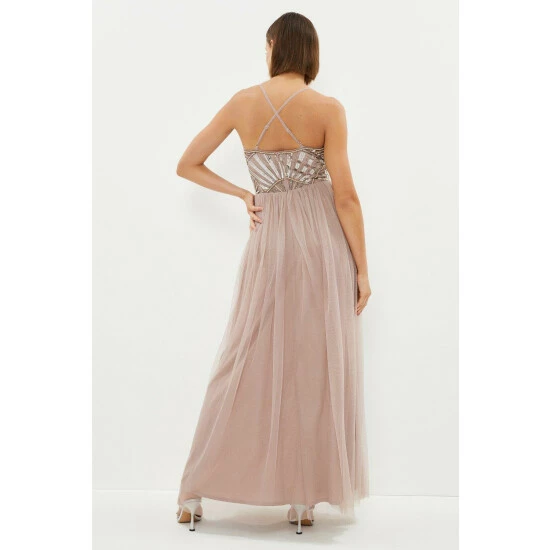 Style: A-Line DressDesign: PlainFabric: Hand StitchLength: MaxiNeckline: V NeckSleeve Length: Strappy