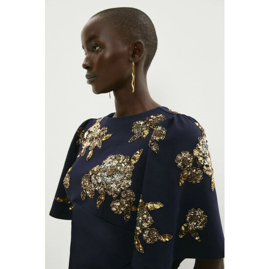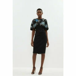 Main: 65% viscose 31% polyamide 4% elastane. Hand wash only. Length: 110cm