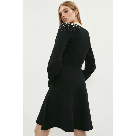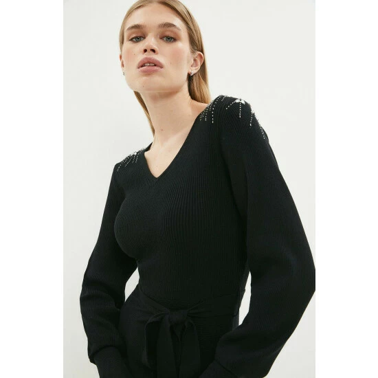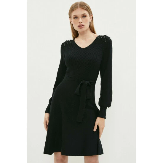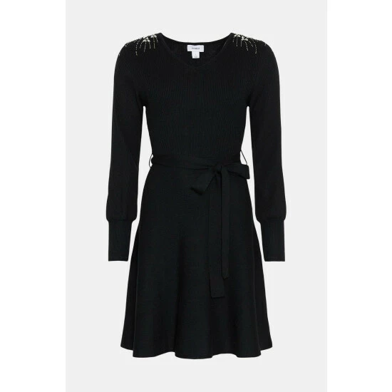 Style: Knitted DressDesign: PlainFabric: KnittedLength: MiniNeckline: V NeckSleeve Length: Long Sleeve