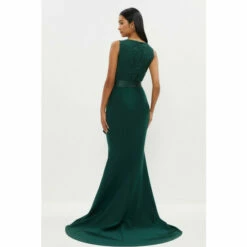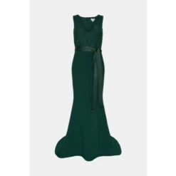 Length 155cm. Main: 89% polyester 11% elastane Main 2: 75% Polyester 25% Polyamide Lining: 100% polyester Belt: 97% Polyester 3% elastane. Wash at 30.