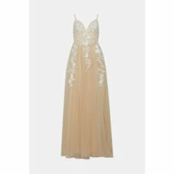Main: 100% Polyamide. Embroidery: 100% Polyester. Lining 1: 100% Polyamide. Lining 2: 100% Polyester. Do Not Wash. Dry Clean in Mild Solvent. Front SNP to Hem Length 155cm. Back SNP to Hem Length 200cm.