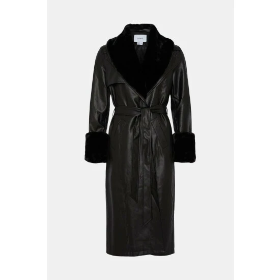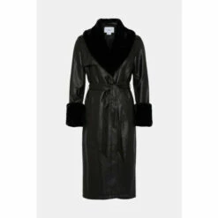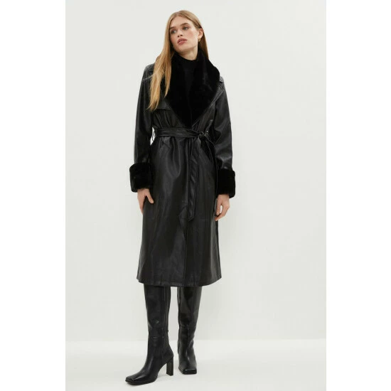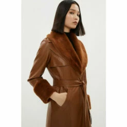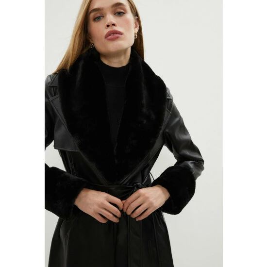 Shell: 60% Viscose/Rayon, 40% Polyurethane. Faux Fur trim: 100% Polyester. Lining: 100% Polyester. Wash with similar colours. Model wears UK 8/US 4. Model height: 5″9.