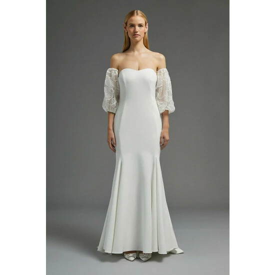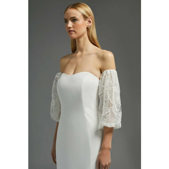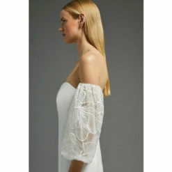 Adding an air of opulence to your special day, these intricately detailed lace sleeves show off a gauzy, semi-sheer finish and voluminous silhouette. Designed to enhance a pared-back bridal gown to show a sense of your personality, they can be easily slipped off to leave your arms free for dancing.Style: GlovesDesign: PlainFabric: Mesh