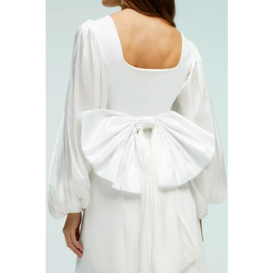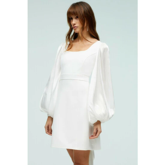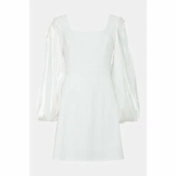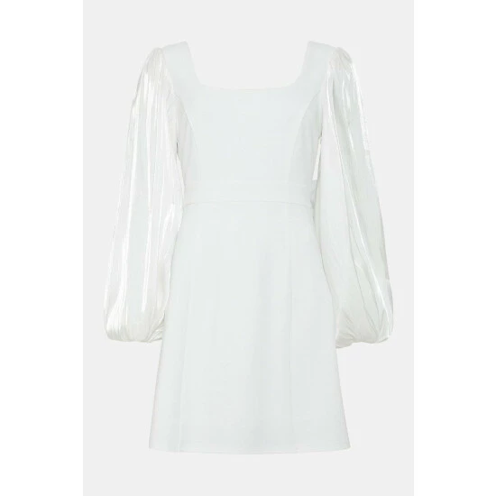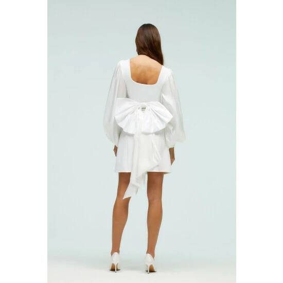 Glossy Organza Sleeve And Statement Bow Back Mini Dress