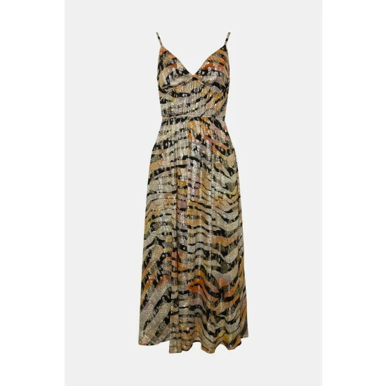 95% viscose 5% metallised fibres lining: 100% polyester. hand wash only. Length: 136cm