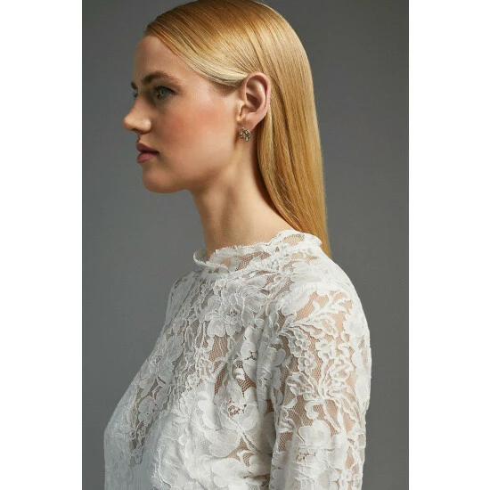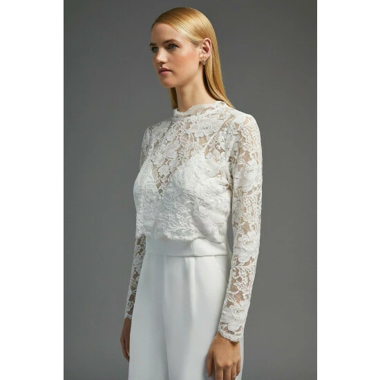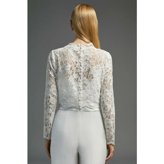 Style: TopDesign: PlainFabric: LaceLength: LonglineNeckline: High NeckSleeve Length: Long Sleeve