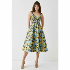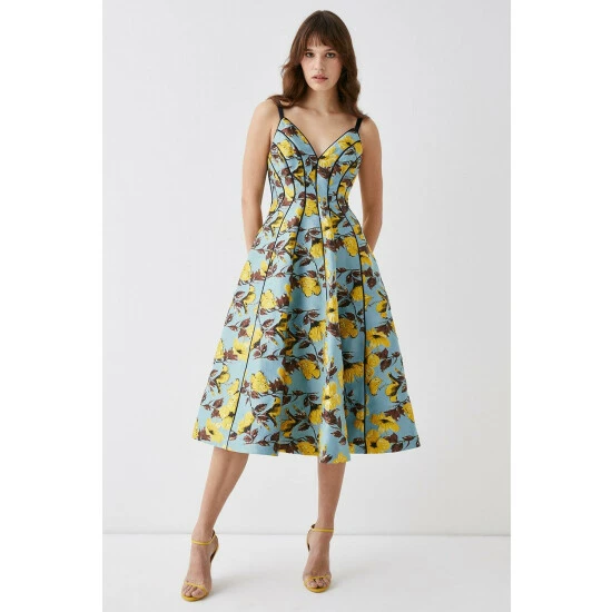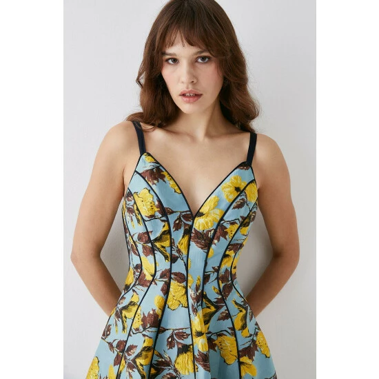 Style: A-Line DressDesign: PrintFabric: JacquardLength: MiniNeckline: V NeckSleeve Length: Strappy