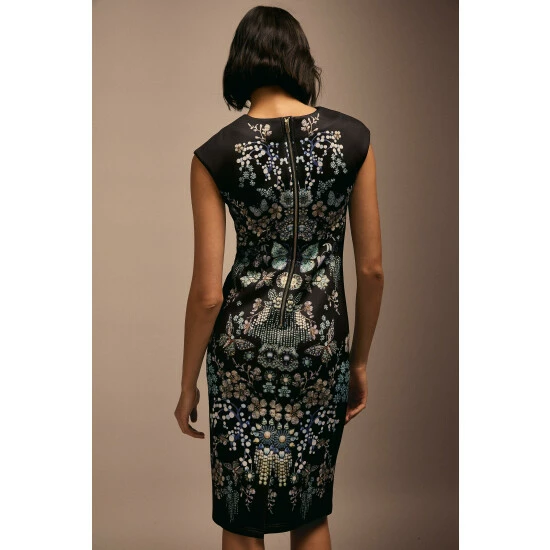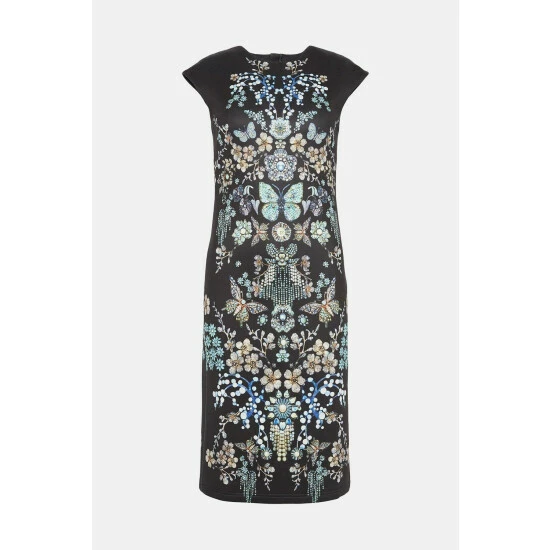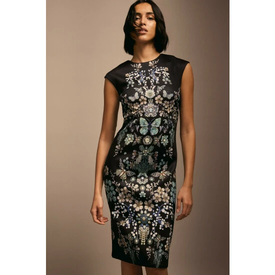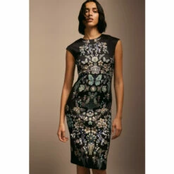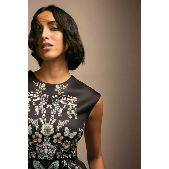 Main: 91% Polyester, 9% Elastane. Lining: 100% Polyester. Wash at 40. Length 111cm.
