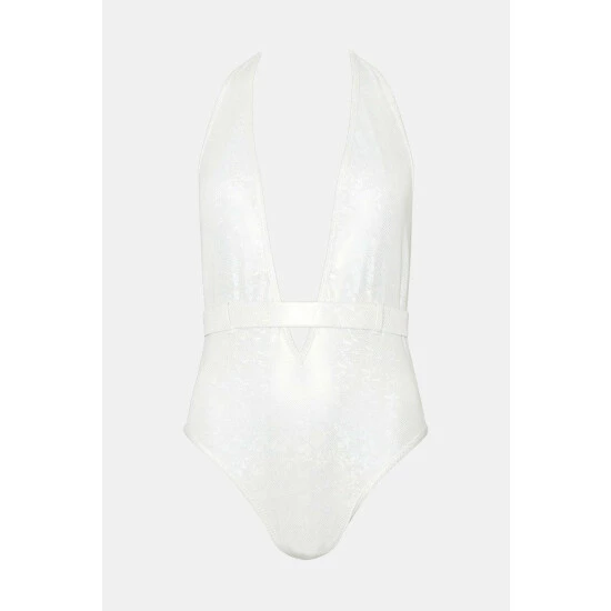 Style: SwimsuitDesign: MetallicFabric: MetallicNeckline: Plunge