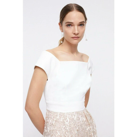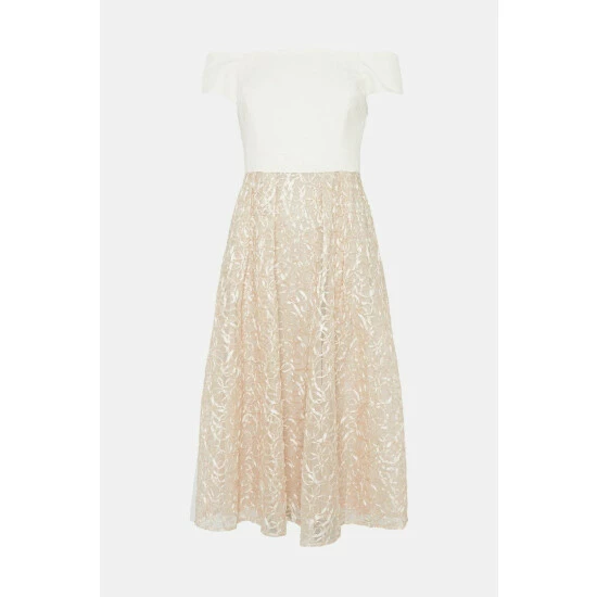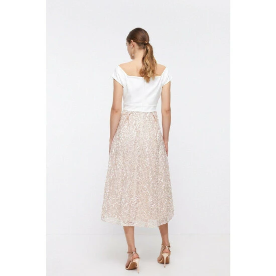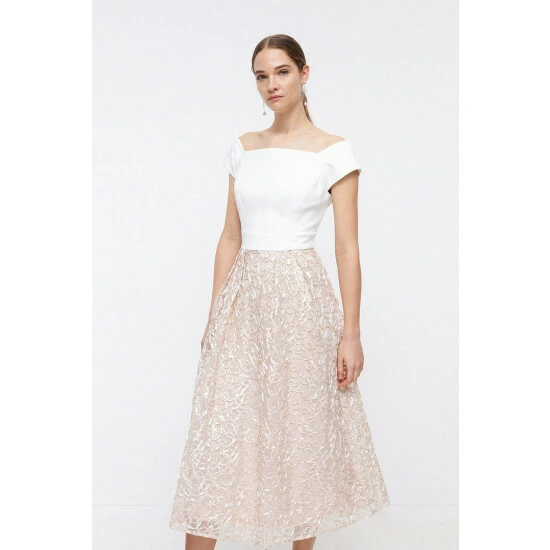 Main 1: 100% Polyester. Main 2: 89% Polyester, 11% Elastane. Lining: 100% Polyester. Dry Clean Only. Length 125cm.