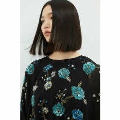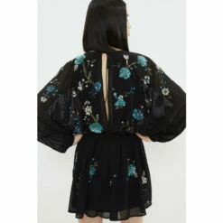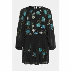 Style: Shift DressDesign: FloralFabric: Hand StitchLength: MiniNeckline: Round NeckSleeve Length: Long Sleeve