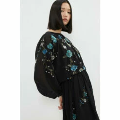 Style: Shift DressDesign: FloralFabric: Hand StitchLength: MiniNeckline: Round NeckSleeve Length: Long Sleeve