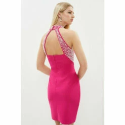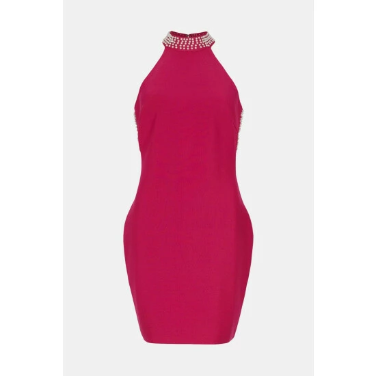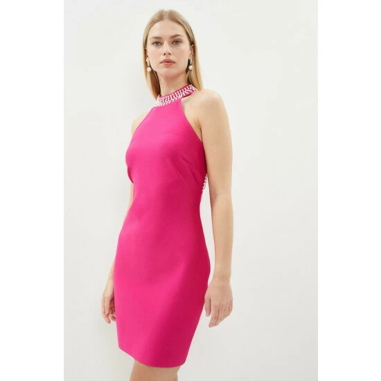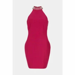 Style: Bodycon DressDesign: PlainFabric: BandageLength: MiniNeckline: HalterneckSleeve Length: Sleeveless