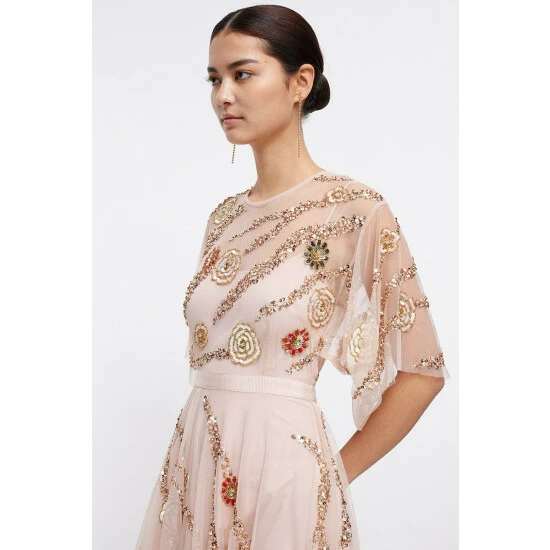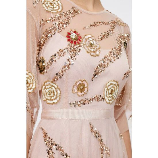 Main: 100% Polyester. Lining: 100% Polyester. Trims: 100% Polyester. Hand Wash Only. Length 118cm.