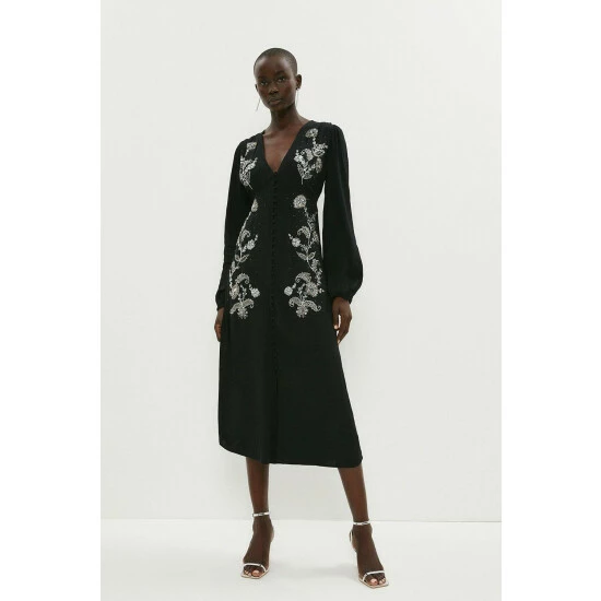 Petite Mirrored Orchid Button Through Dress