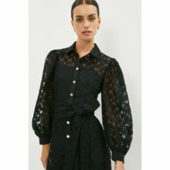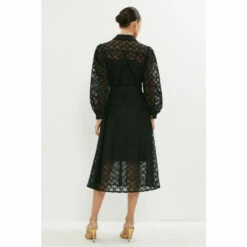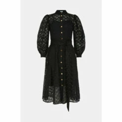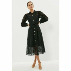 Make a fashion statement in this gorgeous shirt dress. Designed in textured organza and cut to a classic mid-length with puff sleeves, it boasts a super flattering cinched-in waist and is offset with glossy gold-toned buttons.Expertly designed for those 5’3″ and under, our Petite pieces are perfectly proportioned for a smaller frame using shorter lengths.Style: Shirt DressFabric: OrganzaLength: MidiNeckline: CollaredSleeve Length: Long Sleeve