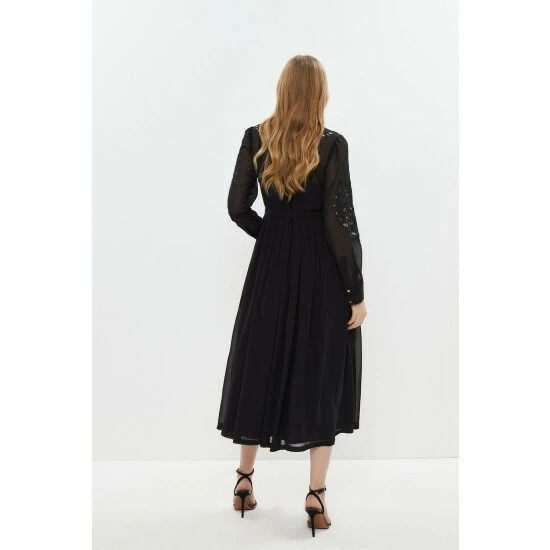 Main: 100% polyester Lining: 100% polyester Embroidery: 100% polyester. machine wash at 30. Length: 126cm