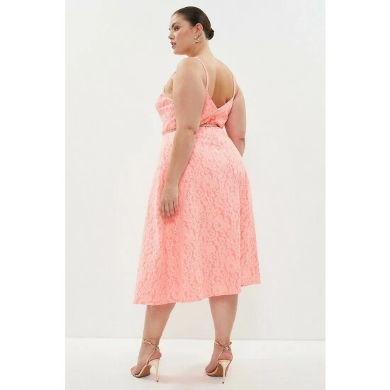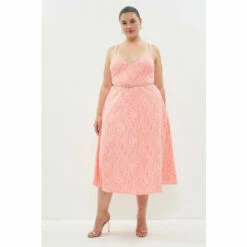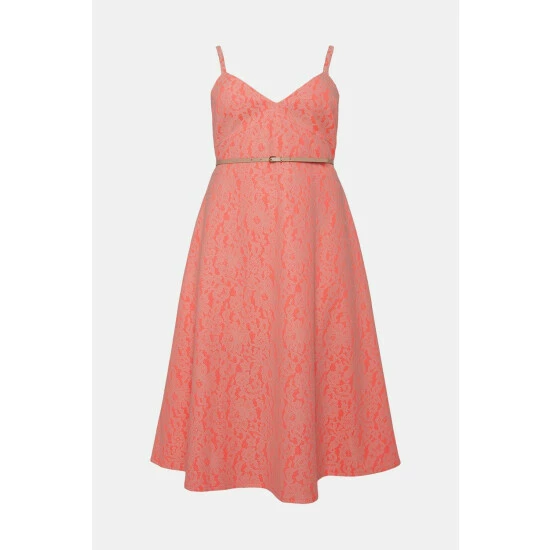 Style: Fit & Flare DressFabric: ScubaLength: MidiNeckline: V NeckSleeve Length: Sleeveless