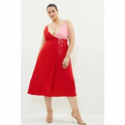 Oh so simple, this draped design is effortlessly elegant. Detailed with a wrap front and slim waist tie, its V-neck bodice and swishy midi skirt flatter every figure and make it a must-have addition for stylish soirees.Expertly designed for those size 18 and above, our plus size collection is perfectly proportioned to ensure you look stylish at every shape.This garment is part of our READY FOR THE FUTURE range.Find out more about our material goals.