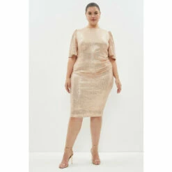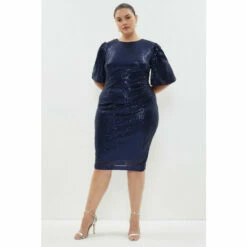 Style: Pencil DressFabric: Fancy FabricLength: MidiNeckline: CrewSleeve Length: Short Sleeve