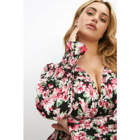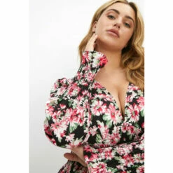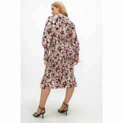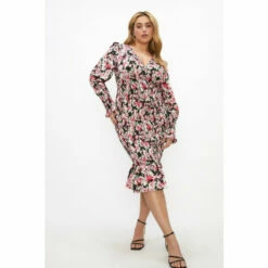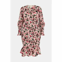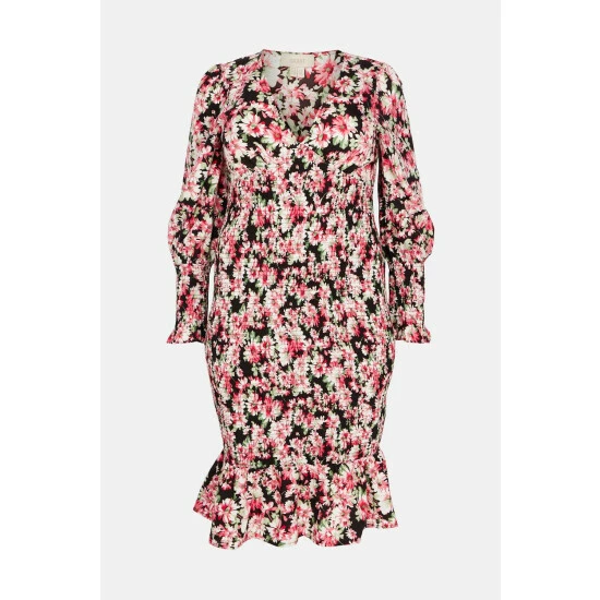 Style: DressDesign: FloralFabric: CrepeLength: MidiNeckline: V NeckSleeve Length: Long Sleeve