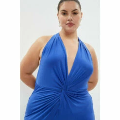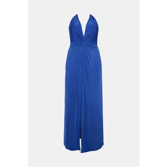 Style: A-Line DressFabric: Ity JerseyLength: MaxiNeckline: PlungeSleeve Length: Sleeveless