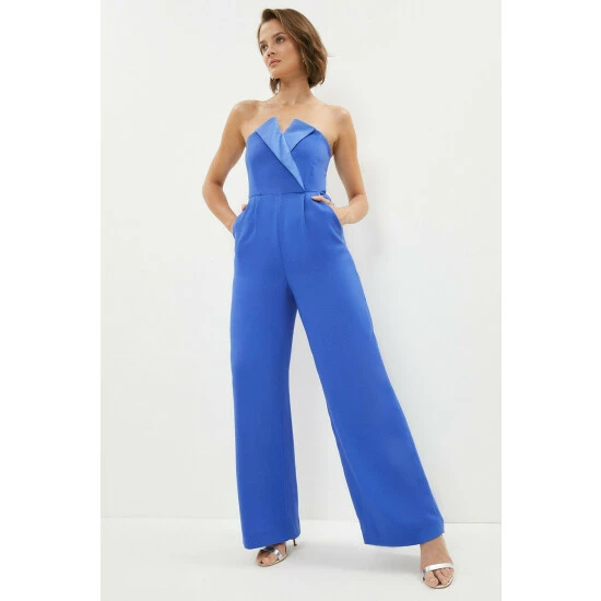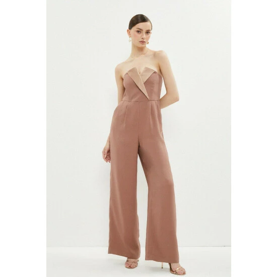 Style: Straight Leg JumpsuitDesign: PlainFabric: LuvitoLength: RegularNeckline: BandeauSleeve Length: Sleeveless