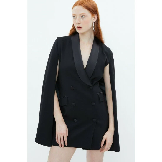 Style: Blazer DressFabric: SatinLength: MiniNeckline: CollaredSleeve Length: Long Sleeve