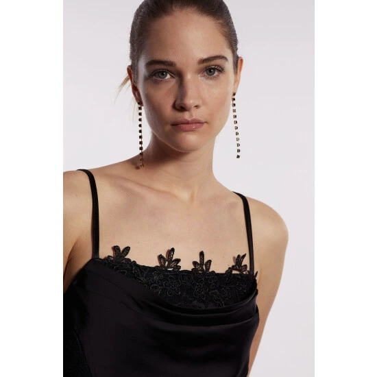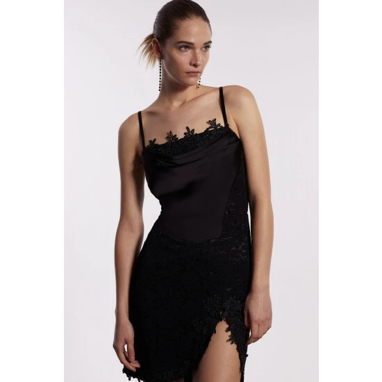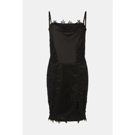 Main: 90% Polyamide, 10% Elastane. Contrast: 100% Polyester. Lining: 90% Polyester, 10% Elastane. Wash at 30. Length 92cm.