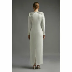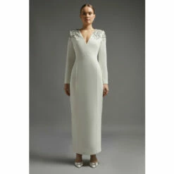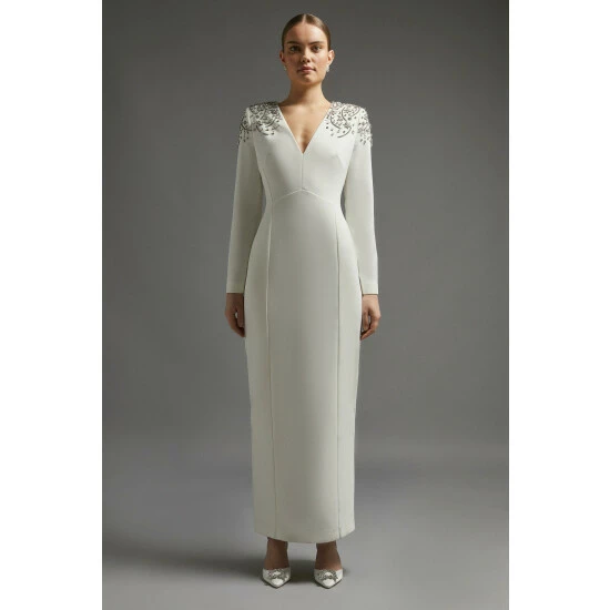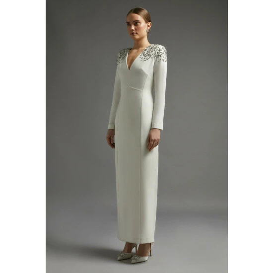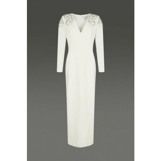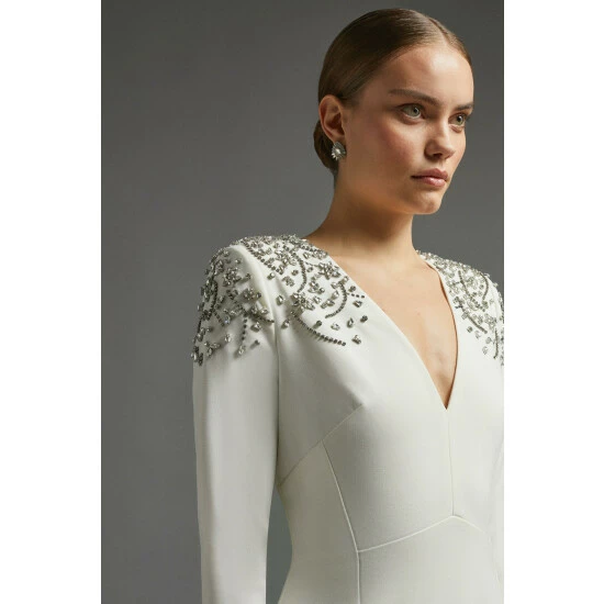 Main: 92% Polyester, 8% Elastane. Lining: 91% Polyester, 9% Elastane. Dry Clean Only.