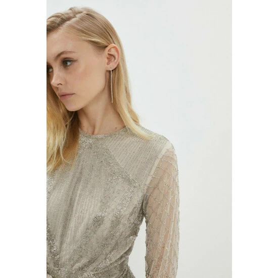 Main: 100% Polyester. Lining: 100% Polyester. Hand Wash Only. Length: 91cm.