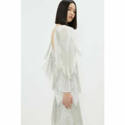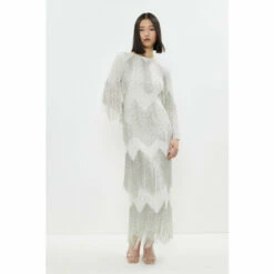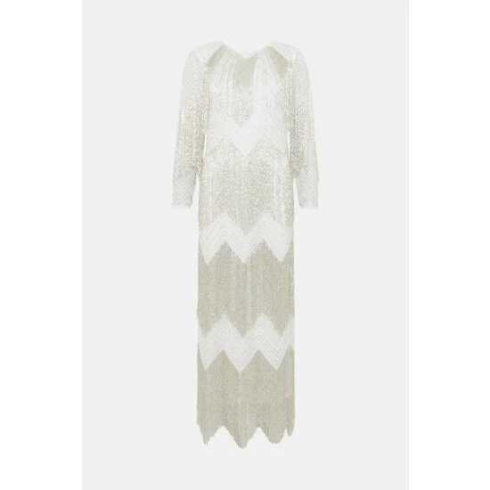 Style: Pencil DressFabric: Fancy FabricLength: MaxiNeckline: CrewSleeve Length: Long Sleeve
