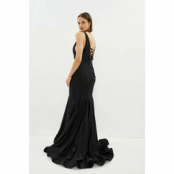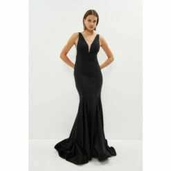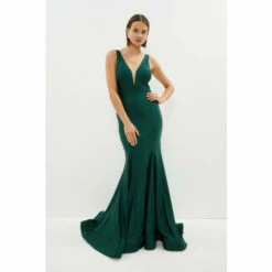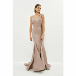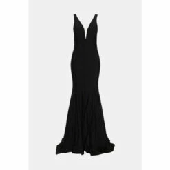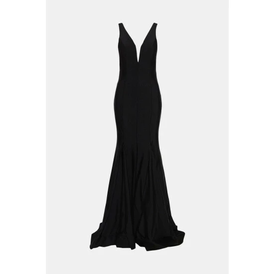 Style: A-Line DressFabric: ItyLength: MaxiNeckline: PlungeSleeve Length: Strappy