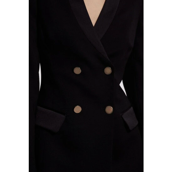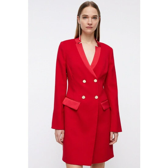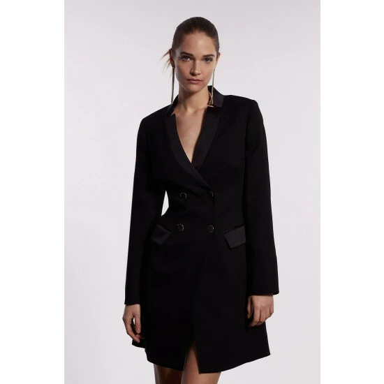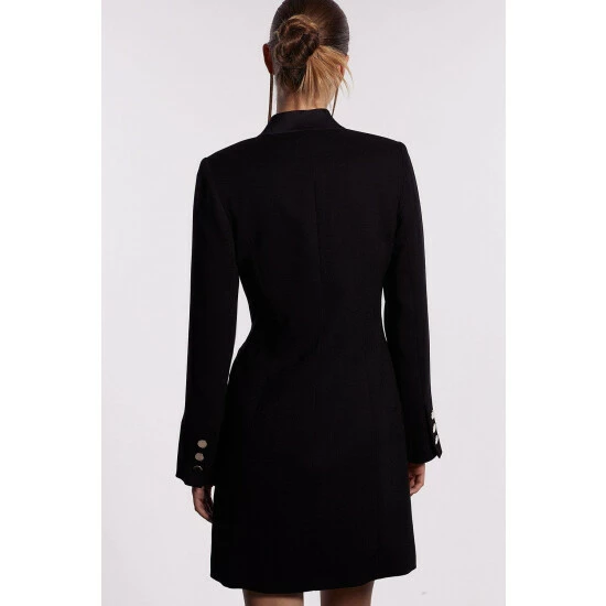 Main & Contrast: 100% polyester Lining: 100% polyester. Dry clean only. Length: 91cm