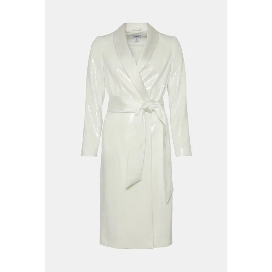 Length: 116cm. Dry clean only. Main: 90% Polyester, 10% elastane.