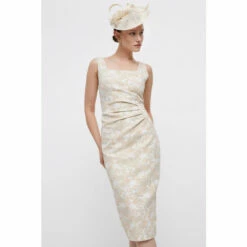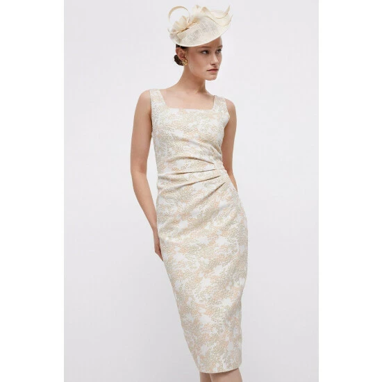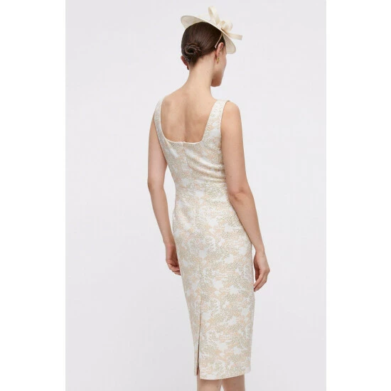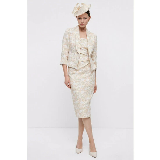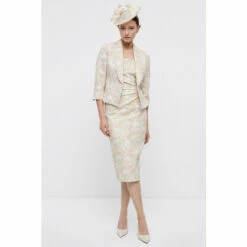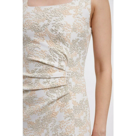 Main: 83% Polyester, 12% Metallised Fibre, 5% Elastane. Lining: 100% Polyester. Dry Clean Only. Length 121cm.