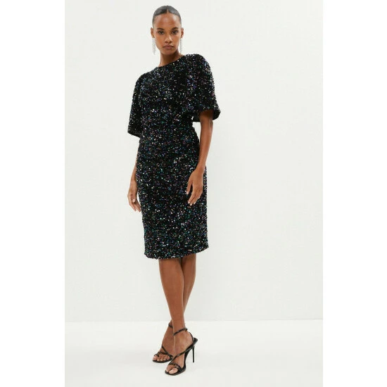 Main: 100% Polyester. Lining: 100% Polyester. Wash at 30. Length 115cm.